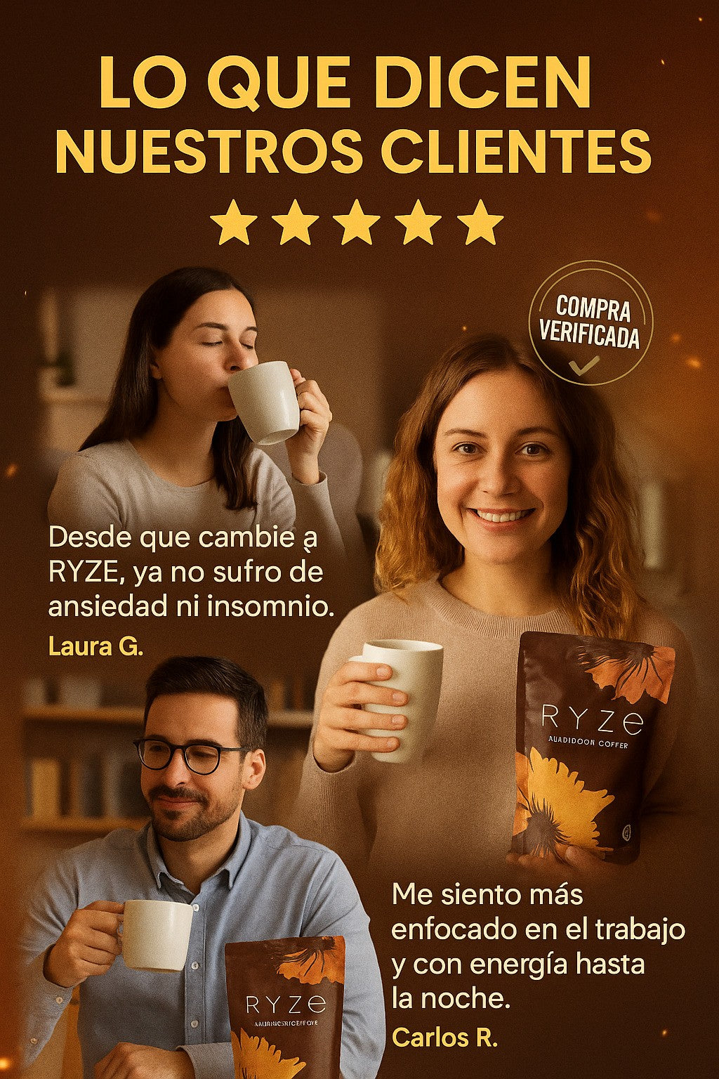 Laura Gómez Desde que tomo RYZE siento la diferencia. Tengo energía todo el día sin ansiedad ni insomnio