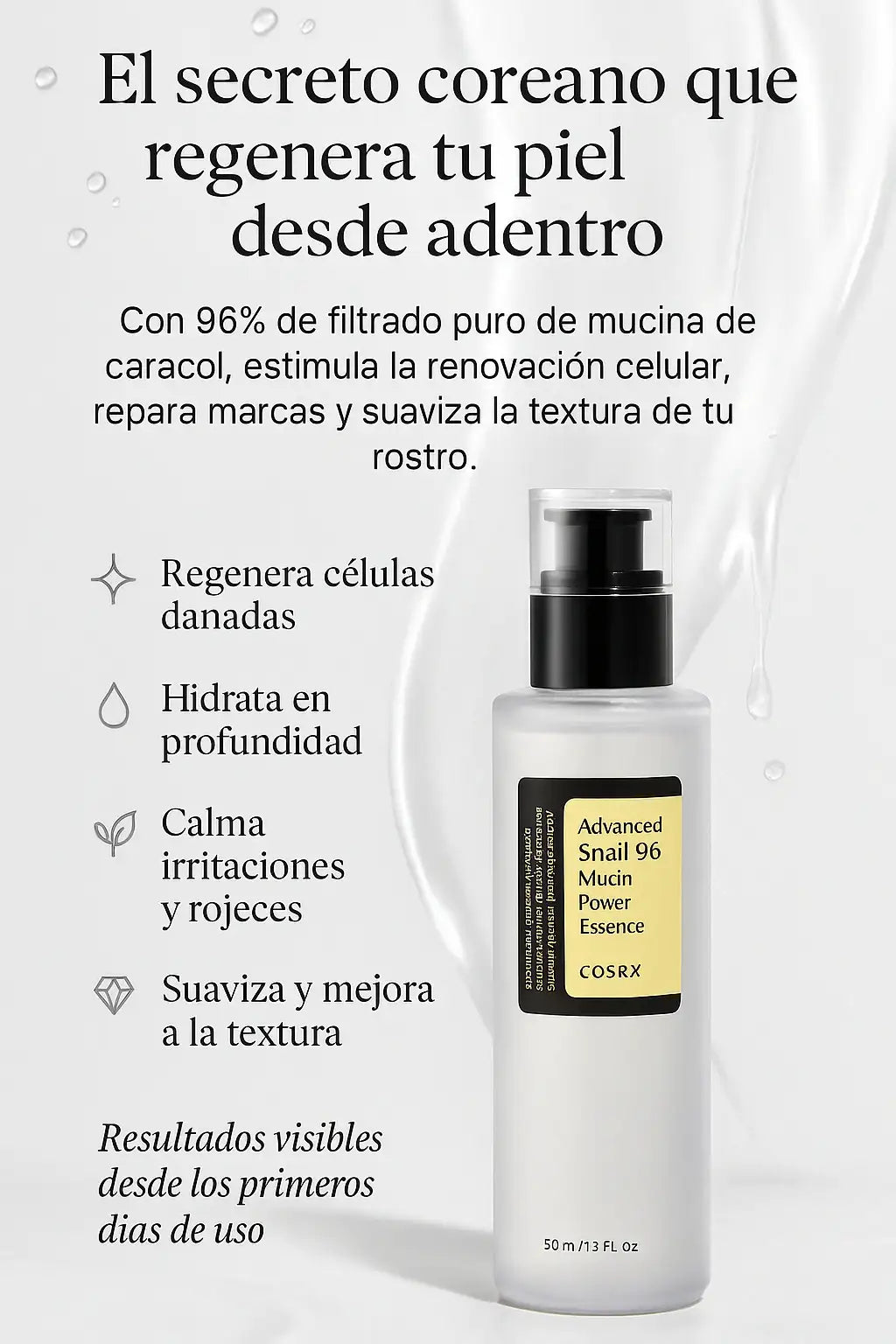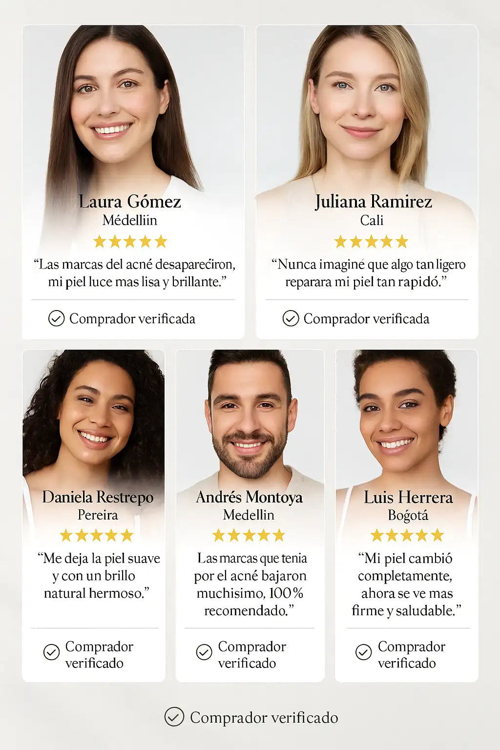 Laura Gonzalez Llevo 10 días usándola y mi piel cambió por completo. Tenía manchas por acné y se han aclarado muchísimo. Se siente fresca, liviana y deja la piel con un brillo natural